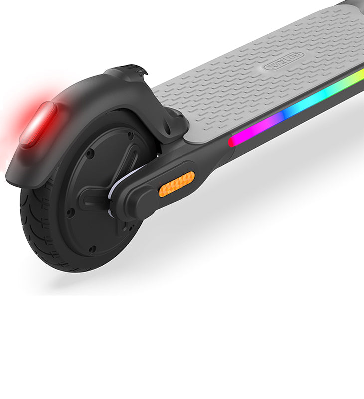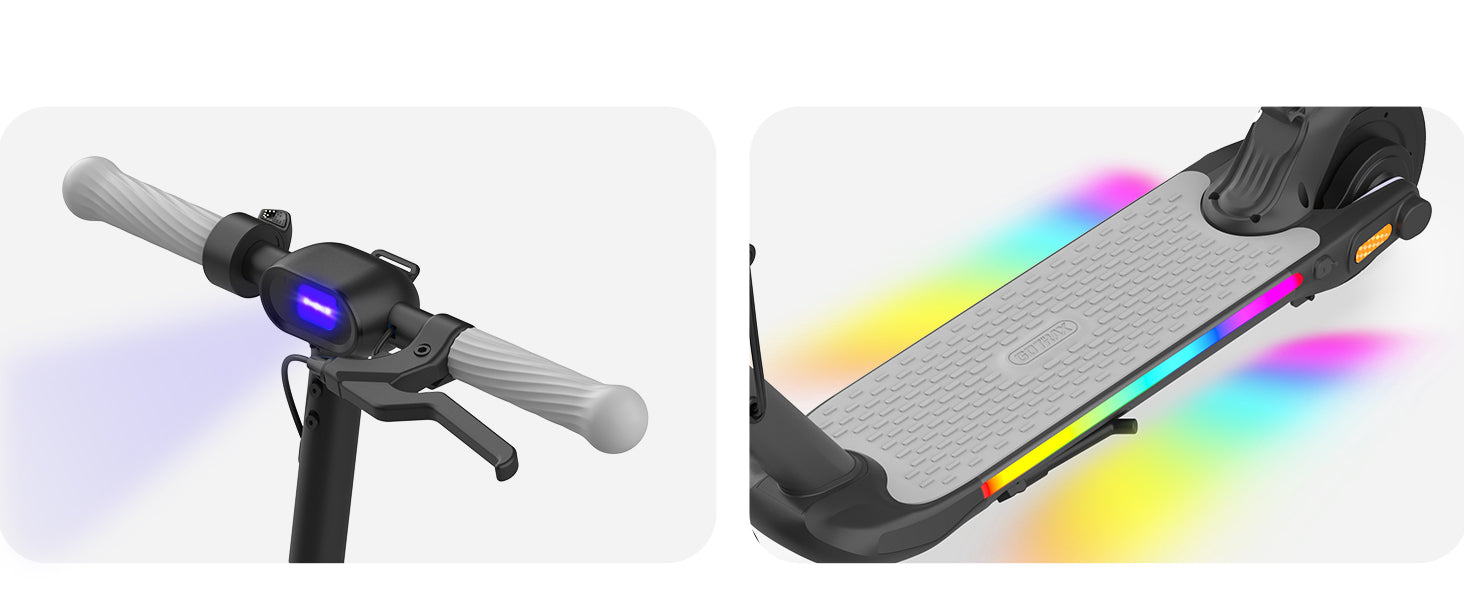 A bright LED headlight is a necessity for any early morning or evening rides. Avoid potholes or other obstructions with ease. And the RGB pedal light that adds a cool touch to the riding experience.