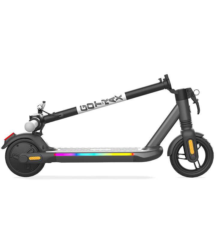 Save on storage space and avoid a swinging deckboard by easily folding your child's e-scooter while it is not in use or stairs get in the way of fun!